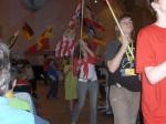 Larissa (Mitte) mit Flagge beim Ausmarsch